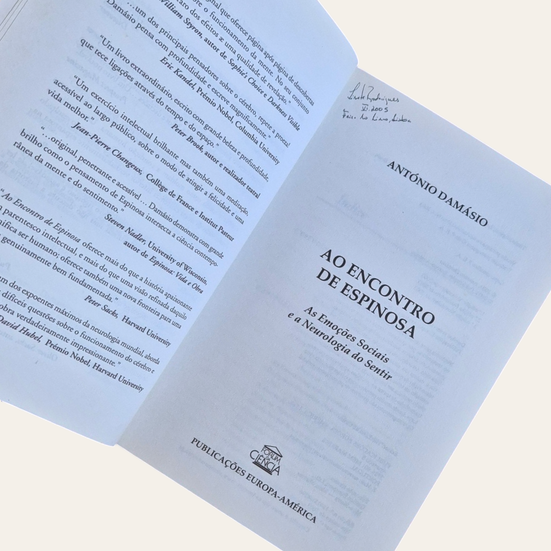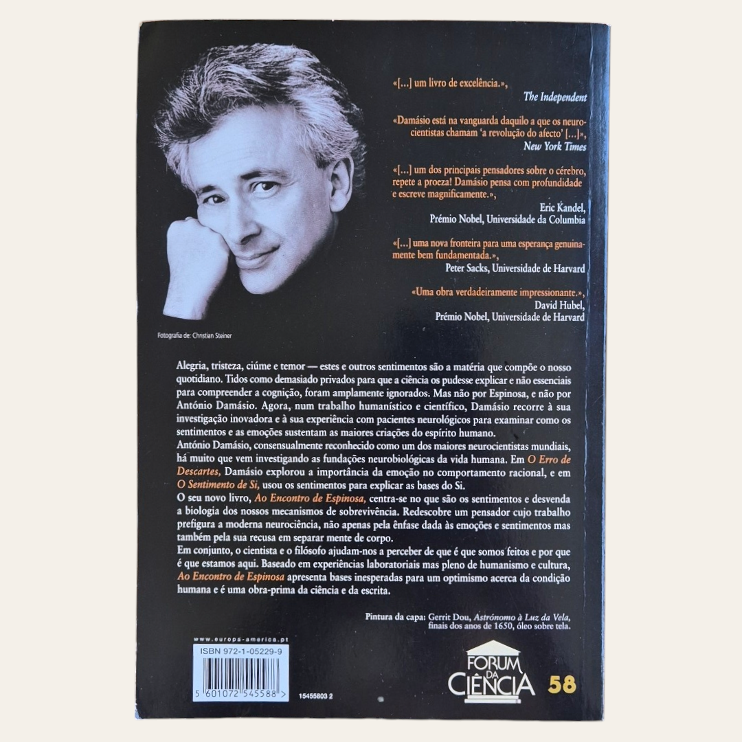 «A minha [anterior] invocação de Descartes foi puramente emblemática de uma perspetiva sobre um problema científico e filosófico e pouco tinha a ver com o personagem histórico. A minha relação com Espinosa, porém, é inteiramente diferente. Espinosa é uma pessoa impar e as suas ideias e maneira de ser fundem-se com os problemas psicológicos que aborda e com a correspondente neurociência.»