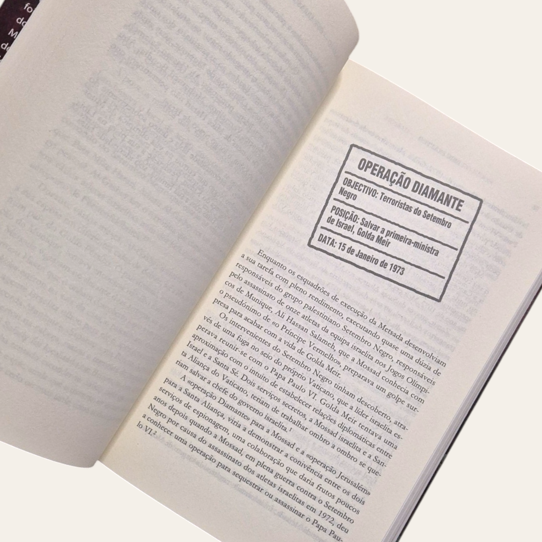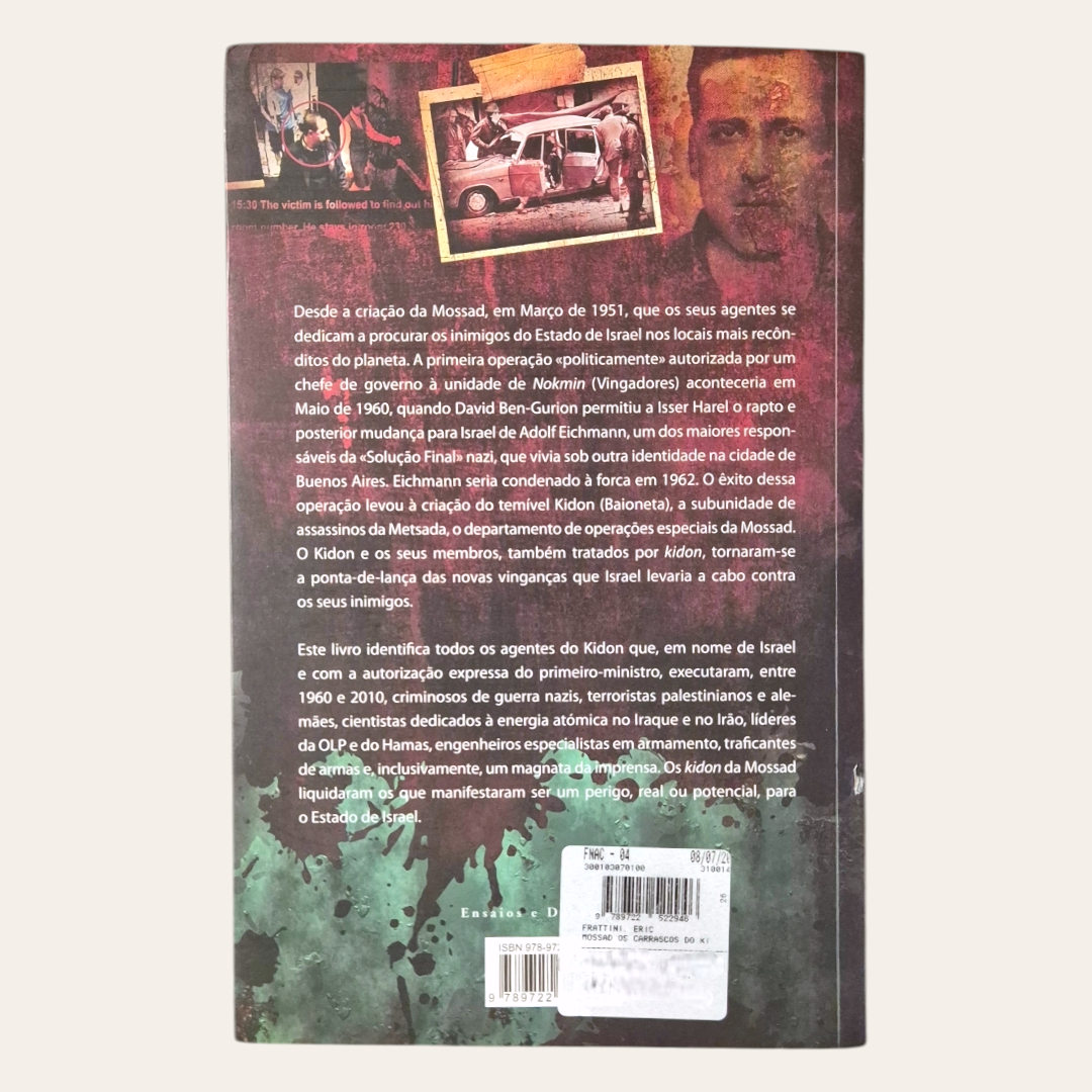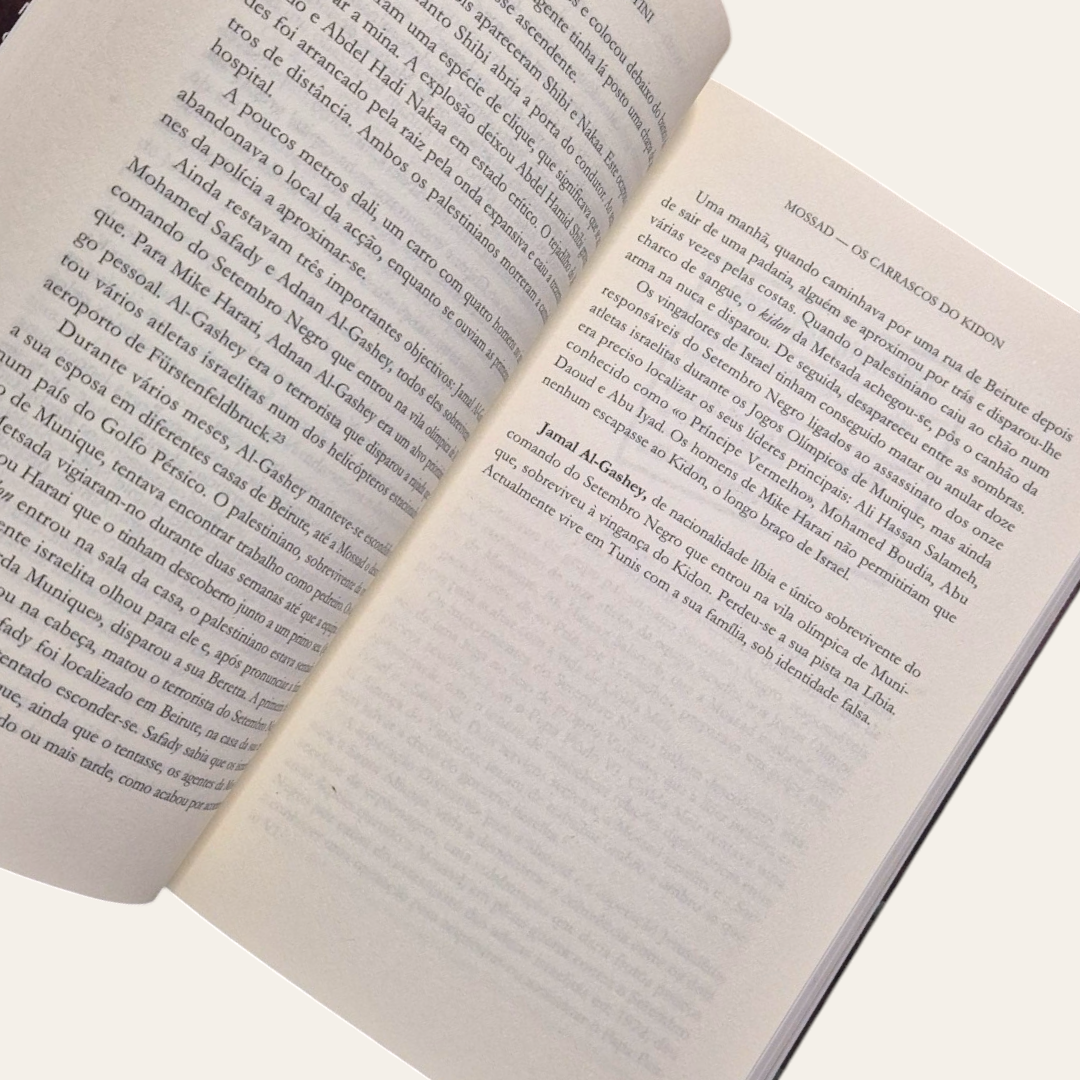 O êxito dessa operação levou à criação do temível Kidon (Baioneta), a subunidade de assassinos da Metsada, o departamento de operações especiais da Mossad. O Kidon e os seus membros, também tratados por kidon, tornaram-se a ponta-de-lança das novas vinganças que Israel levaria a cabo contra os seus inimigos. Este livro identifica todos os agentes do Kidon que, em nome de Israel e com a autorização expressa do primeiro-ministro, executaram, entre 1960 e 2010, criminosos de guerra nazis, terroristas palestinianos e alemães, cientistas dedicados à energia atómica no Iraque e no Irão, líderes da OLP e do Hamas, engenheiros especialistas em armamento, traficantes de armas e, inclusivamente, um magnata da imprensa. Os kidon da Mossad liquidaram os que manifestaram ser um perigo, real ou potencial, para o Estado de Israel.