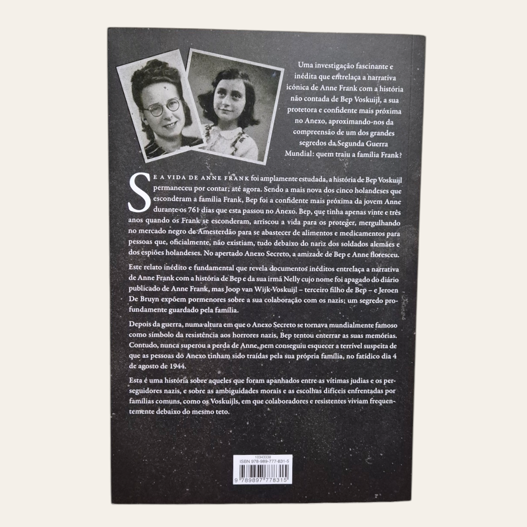 Uma investigação fascinante e inédita que entrelaça a narrativa icónica de Anne Frank com a história não contada de Bep Voskuijl, a sua protetora e confidente mais próxima no Anexo, aproximando-nos da compreensão de um dos grandes segredos da Segunda Guerra Mundial: quem traiu a família Frank?