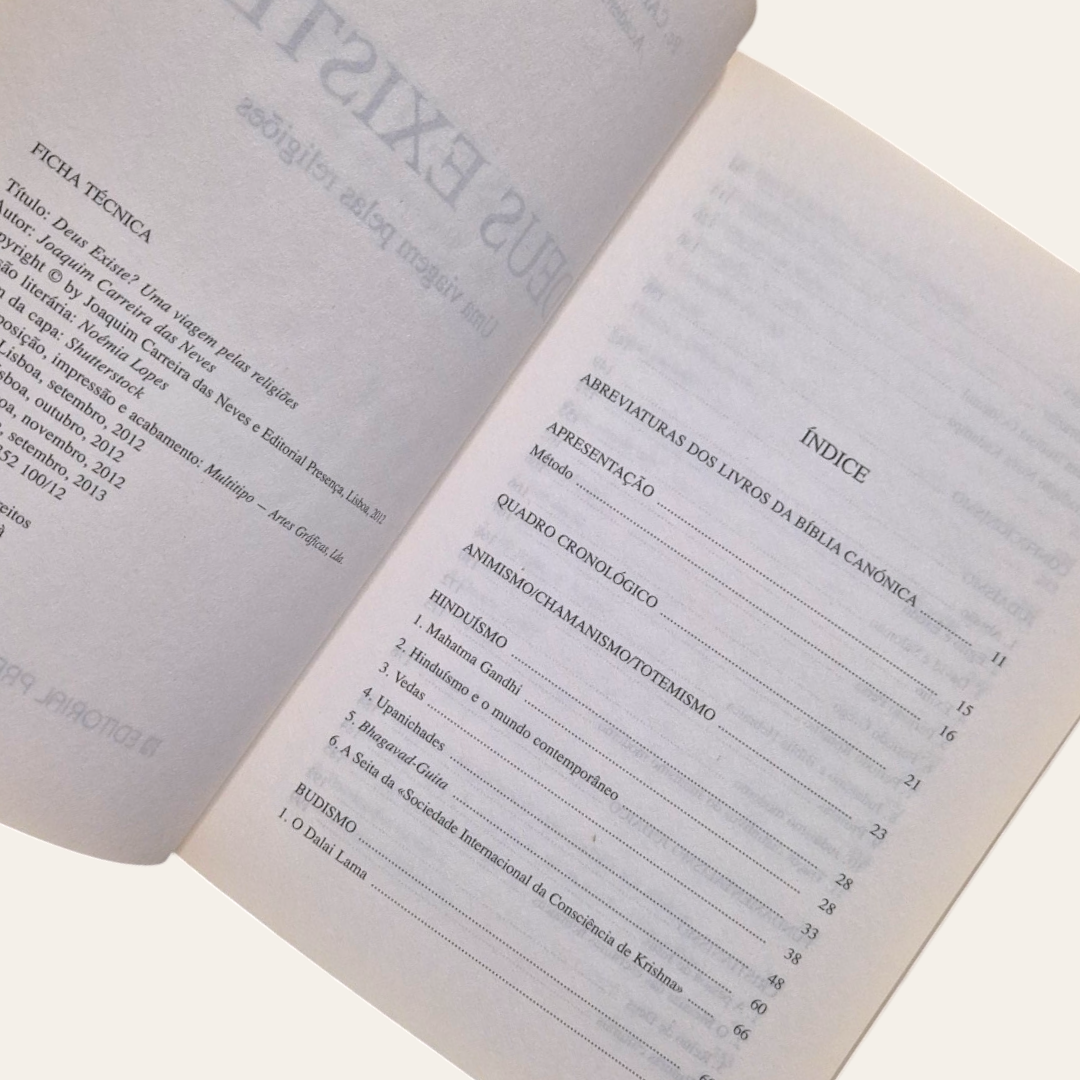 Durante muito tempo considerou-se que as religiões desapareceriam sob a égide da razão, à medida que as sociedades se tornassem mais desenvolvidas. Em vez disso, num mundo agora globalizado e tecnologicamente avançado, multiplicam-se as manifestações da vida religiosa, assistindo-se mesmo à revitalização de crenças consideradas primitivas, que integraram o movimento New Age. O Pe. Carreira das Neves, padre franciscano, teólogo e Professor, revisita as grandes religiões que têm prevalecido ao longo dos séculos e aprofunda movimentos que têm surgido mais recentemente, reclamando-se de inspiração divina. Deus Existe? é um livro magnífico e inovador, capaz de aliciar um vasto público de crentes e não crentes interessados em aprofundar o seu conhecimento do património espiritual da humanidade