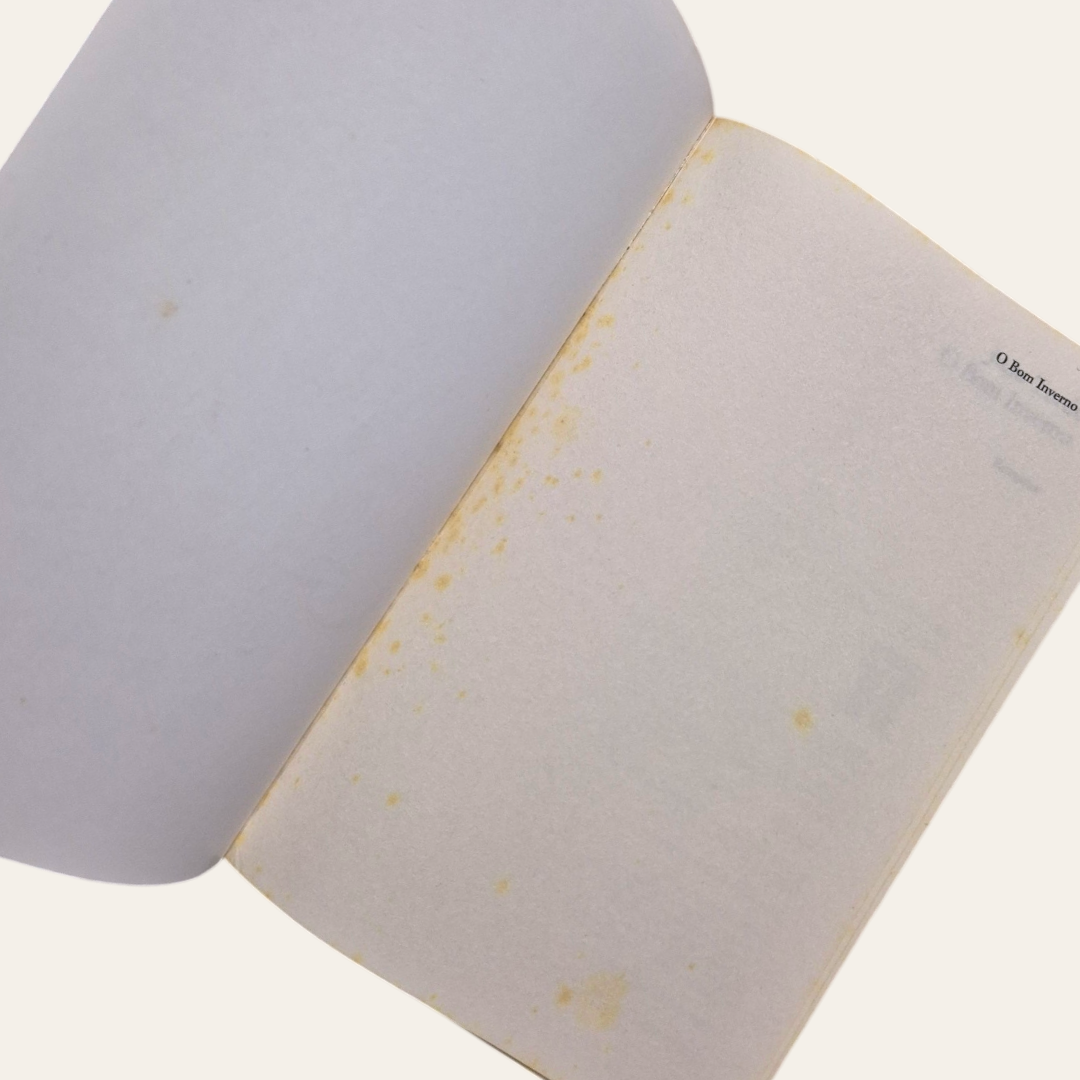 Folhas de guarda possuem pontos de acidez e páginas amarelecidas pelo tempo.