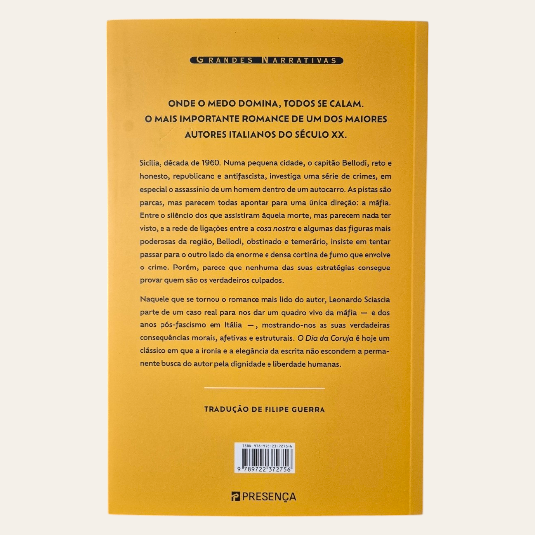 Naquele que se tornou o romance mais lido do autor, Leonardo Sciascia parte de um caso real para nos dar um quadro vivo da máfia - e dos anos pós-fascismo em Itália -, mostrando-nos as suas verdadeiras consequências morais, afetivas e estruturais. O Dia da Coruja é hoje um clássico em que a ironia e a elegância da escrita não escondem a permanente busca do autor pela dignidade e liberdade humanas.