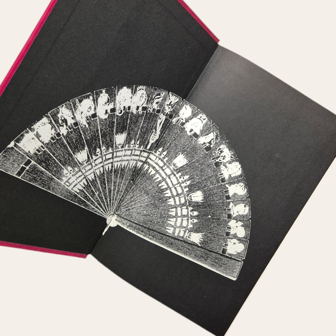 Edição de capa dura encarnada com vários detalhes a dourado.