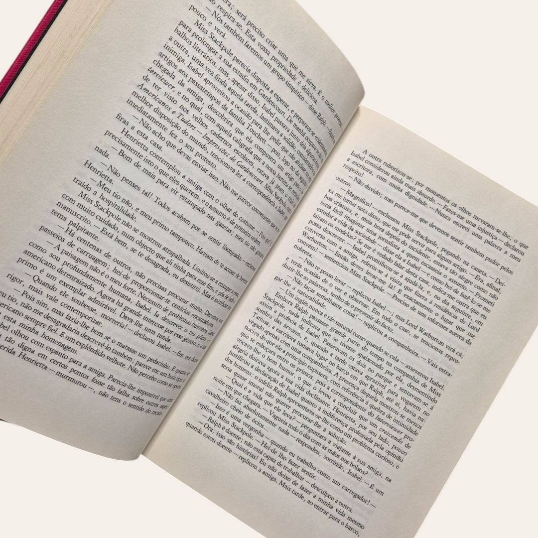 Henry James revela magistralmente nesta obra a subtil tragédia da inocência perdida e dos sonhos desfeitos. O autor constrói sua história como um jogo em que cada coisa se converte no seu oposto: liberdade em destino, afeto em traição, pureza em astúcia e vice-versa.