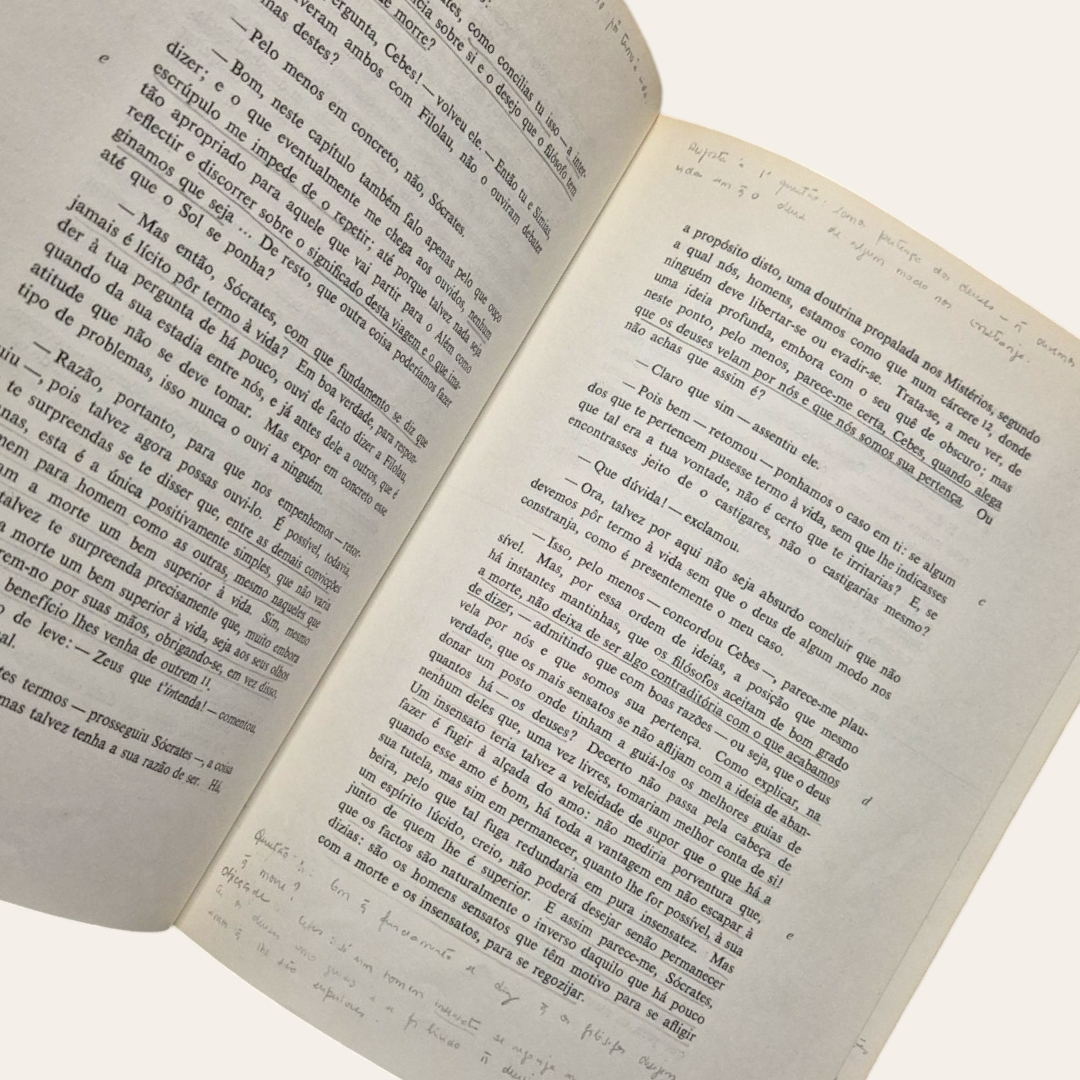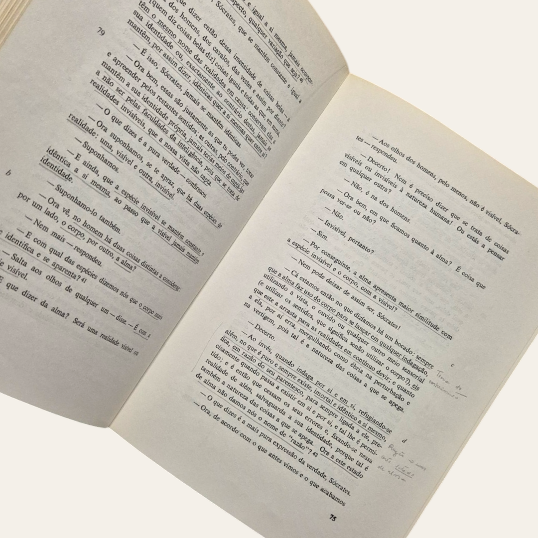 Páginas levemente amarelecidas e com anotações e sublinhados a lápis.