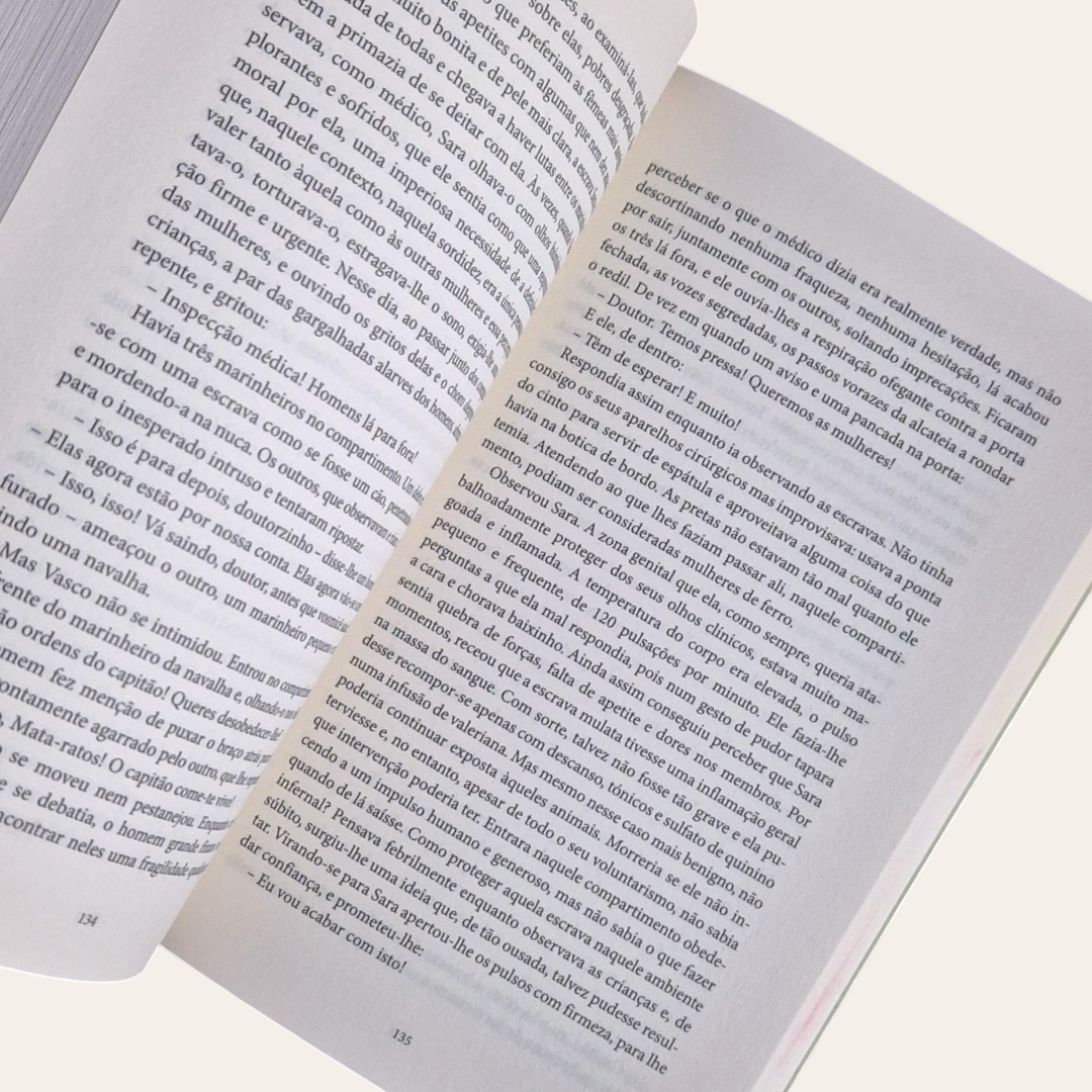 Tudo começa na Primavera de 1833. Profundamente abalado por um desgosto de amor, o doutor Vasco Lacerda decide abandonar Lisboa para tentar curar o coração ao sol de uma nova vida, nos trópicos. Contudo, no decurso da sua viagem, vê-se arrastado, contra vontade, para o mundo da escravatura e toma contacto directo com realidades de que já ouvira falar, mas que nunca tinha sentido e percebido na sua verdadeira natureza. E trava, também, conhecimento com a gente que, para o melhor e o pior, povoa esse bárbaro mundo: Tarquínio Torcato, o cruel negreiro; Gaspar, o negro que odeia negros; Sara, a escrava que acende o desejo em todos os homens; Quisama, a pretinha que tudo quer aprender; Januário Paraíso, o velho cocheiro que canta canções de amor; e muitos outros e outras que enchem de afectos e de vida um universo de horrível desumanidade.