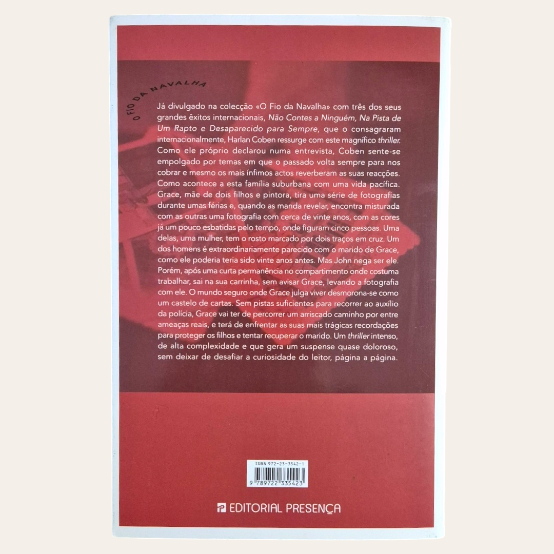 Dos Estados Unidos chega um novo policial do consagrado Harlan Coben. Vencedor dos mais prestigiados prémios literários e aclamado mundialmente pela crítica, Coben é um autor de referência no género. Grace Lawson recupera um antigo álbum de fotografias de família mas subitamente depara-se com um retrato tirado há vinte anos atrás em que se vislumbram cinco pessoas. Grace não reconhece ninguém à excepção de um homem muito parecido com Jack, o seu marido. Intrigada, mostra o retrato a Jack que imediatamente nega qualquer semelhança. Nessa noite, Jack desaparece sem deixar rasto durante vários dias levando com ele a fotografia. Após a recusa de ajuda por parte dos vizinhos e da polícia, Grace inicia uma viagem pelo passado, a única forma de recuperar o marido. Pleno de suspense, acção e intensidade é uma obra que agitará o universo dos leitores.
