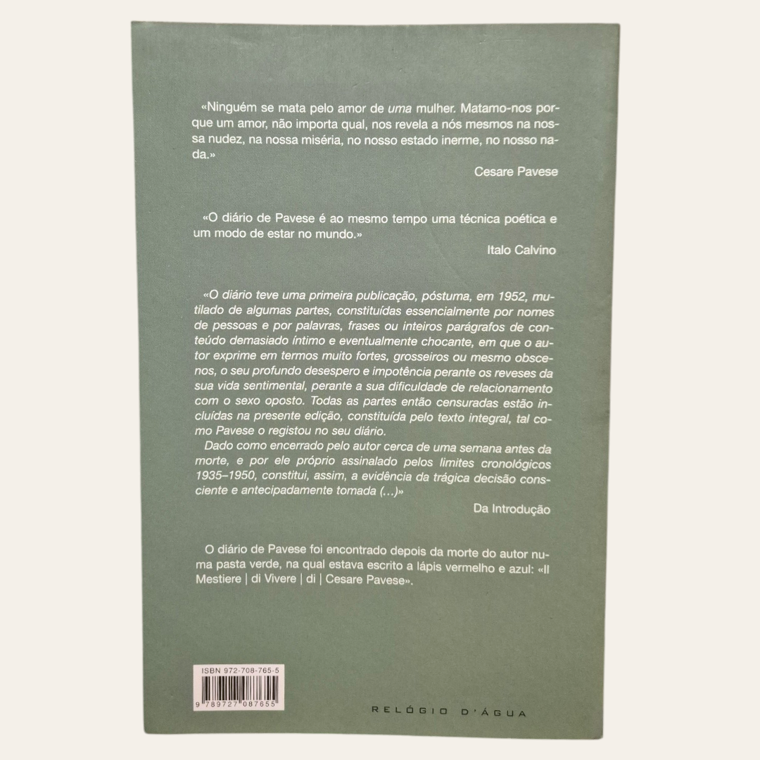 «O diário teve uma primeira publicação, póstuma, em 1952, mutilado de algumas partes, constituídas essencialmente por nomes de pessoas e por palavras, frases ou inteiros parágrafos de conteúdo demasiado íntimo e eventualmente chocante, em que o autor exprime em termos muitos fortes, grosseiros ou mesmo obscenos, o seu profundo desespero e impotência perante os reveses da sua vida sentimental, perante a sua dificuldade de relacionamento com o sexo oposto. Todas as partes então censuradas estão incluídas na presente edição, constituída pelo texto integral, tal como Pavese o registou no seu diário. Dado como encerrado pelo autor cerca de uma semana antes da morte, e por ele próprio assinalado pelos limites cronológicos 1935-1950, constitui, assim, a evidência da trágica decisão consciente e antecipadamente tomada (...)»