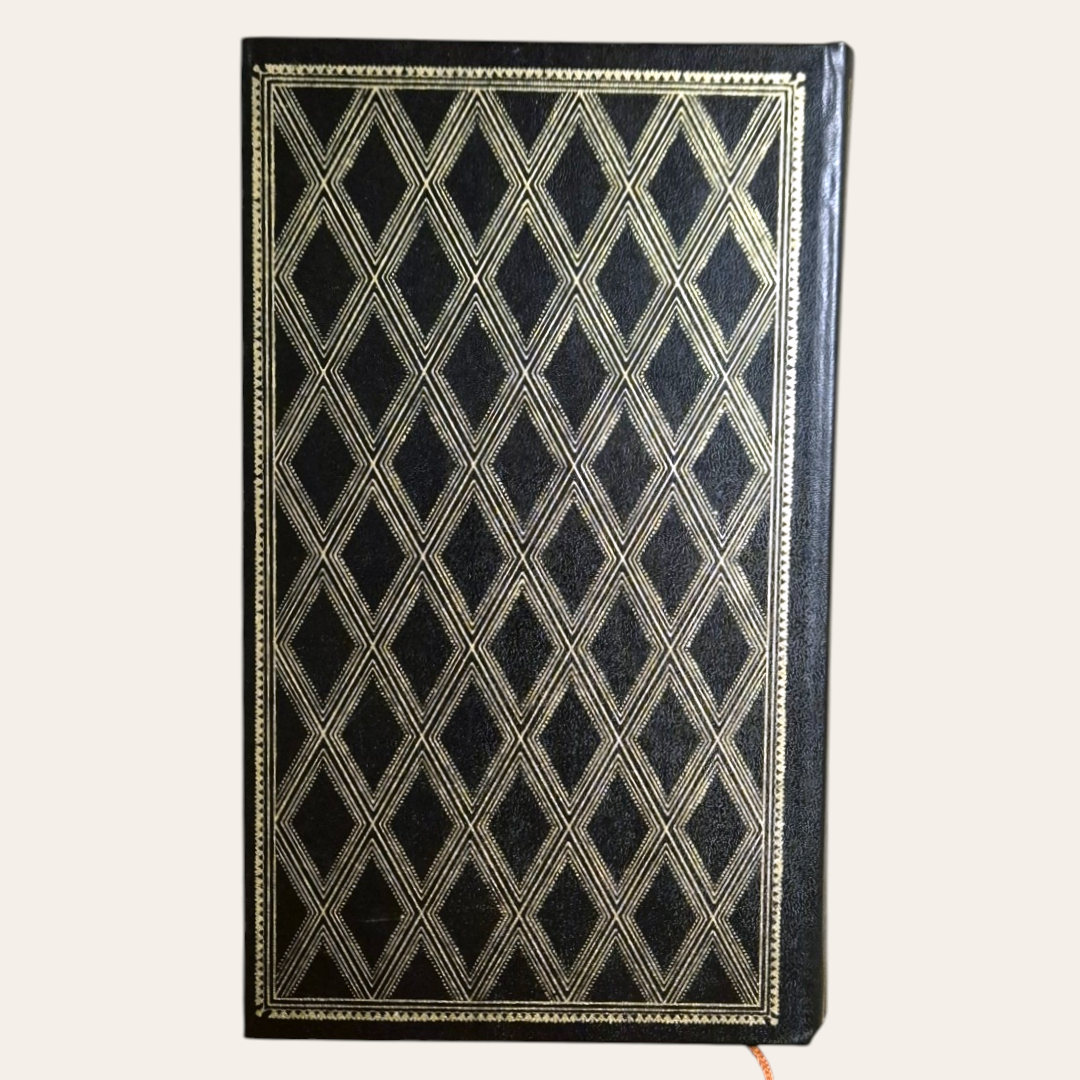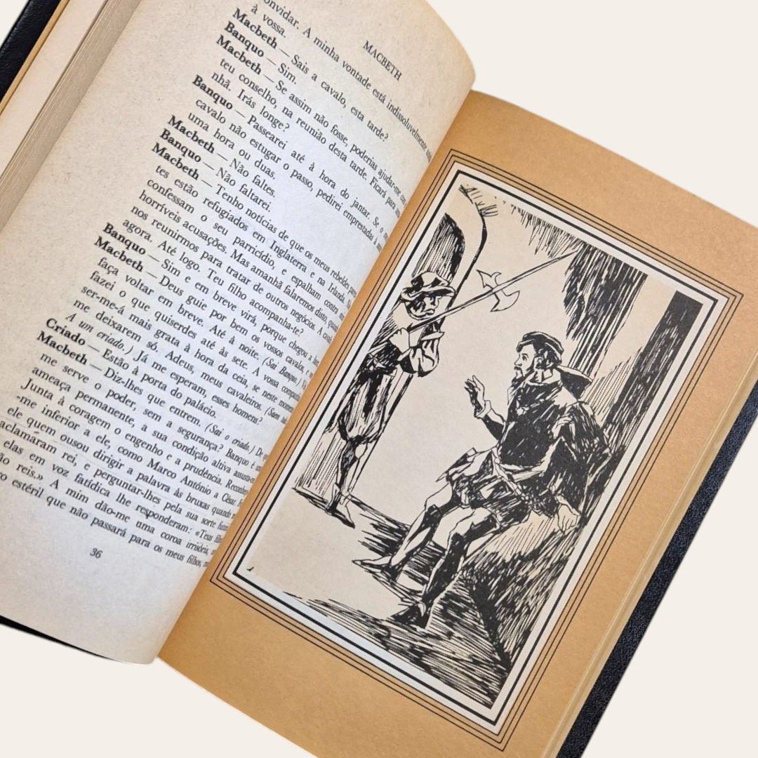 Edição de capa dura, com detalhes a dourado, apresentando algum desgaste na lombada.