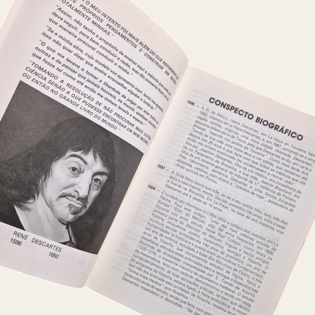 Discurso do Método, obra fundamental de Descartes e da filosofia ocidental, foi escrito em 1633. Escrito sob a forma de autobiografia, tratado científico e filosófico, fundamenta o racionalismo moderno e a filosofia cartesiana na linha de Montaigne e Galileu. Com Discurso do Método Descartes revolucionou o pensamento filosófico, sendo considerado como o primeiro filósofo moderno. Nota para a excelente tradução de Pinharanda Gomes.