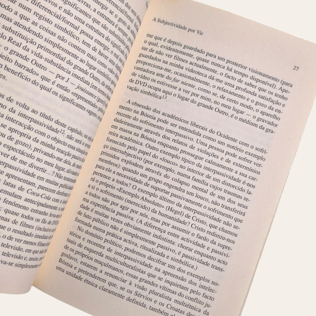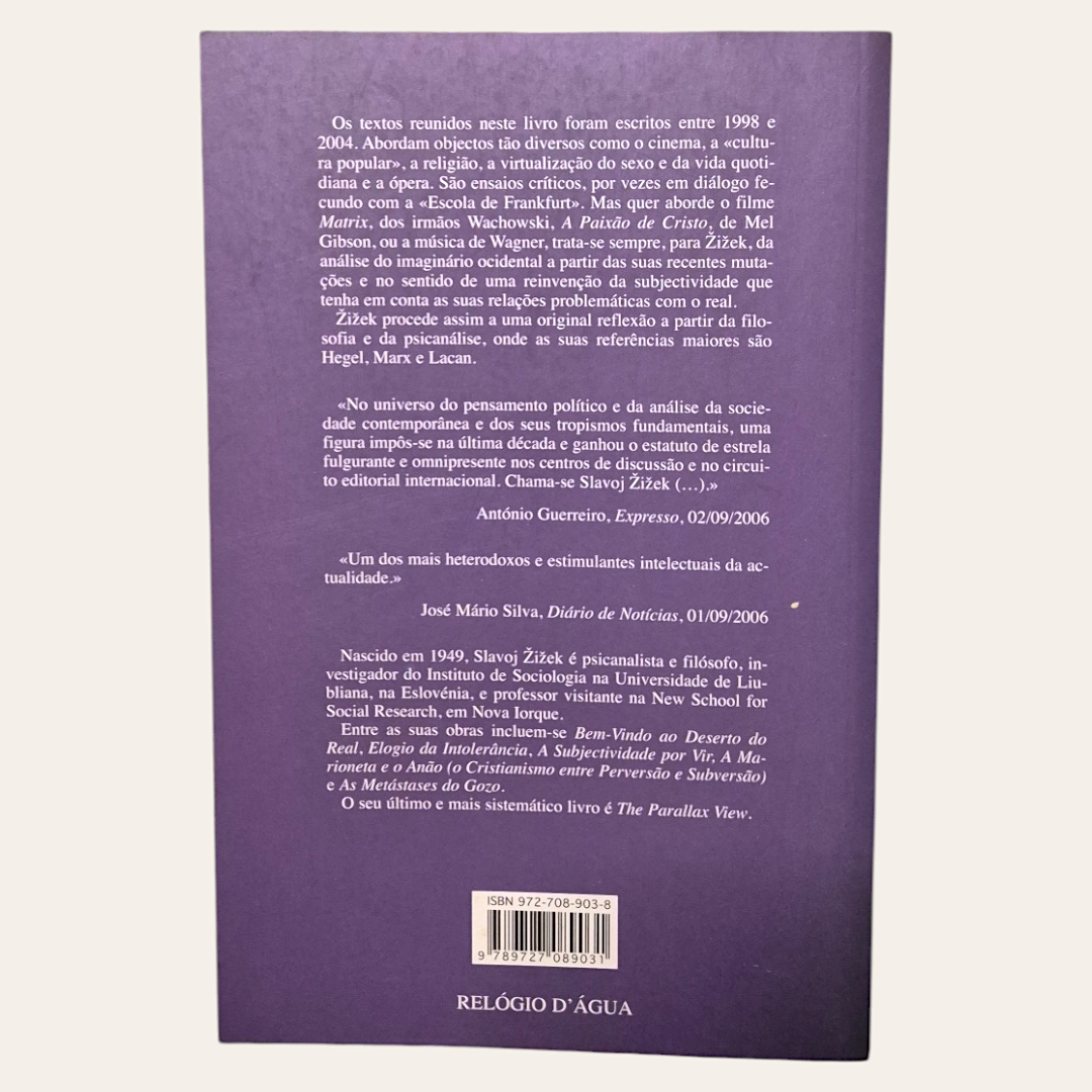 Os textos reunidos neste livro foram escritos entre 1998 e 2004. Abordam objectos tão diversos como o cinema, a «cultura popular», a religião, a virtualização do sexo e da vida quotidiana e a ópera. São ensaios críticos, por vezes em diálogo fecundo com a «Escola de Frankfurt». Mas quer aborde o filme Matrix dos irmãos Wachowski, A Paixão de Cristo, de Mel Gibson, ou a música de Wagner, trata-se sempre, para Zizek, da análise do imaginário ocidental a partir das suas recentes mutações e no sentido de uma reinvenção da subjectividade que tenha em conta as suas relações problemáticas com o real. Zizek procede assim a uma original reflexão a partir da filosofia e da psicanálise, onde as suas referências maiores são Hegel, Marx e Lacan.
