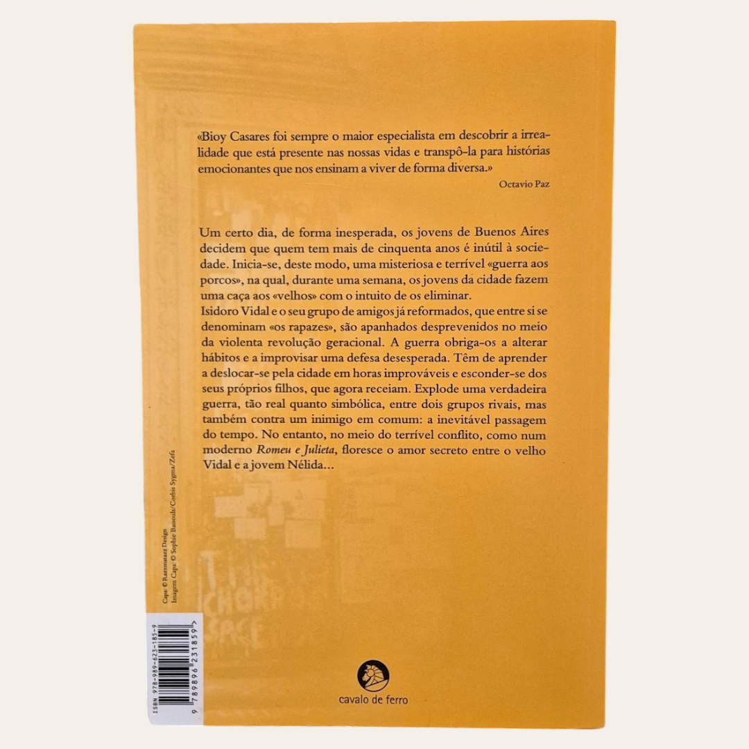 Um certo dia, de forma inesperada, os jovens de Buenos Aires decidem que quem tem mais de cinquenta anos é inútil à sociedade. Inicia-se, deste modo, uma misteriosa e terrível «guerra aos porcos», na qual, durante uma semana, os jovens da cidade fazem uma caça aos «velhos» com o intuito de os eliminar…. Isidoro Vidal e o seu grupo de amigos já reformados, que entre si se denominam «os rapazes», são apanhados desprevenidos no meio da violenta revolução geracional. Explode uma verdadeira guerra, tão real quanto simbólica, entre dois grupos rivais, mas também contra um inimigo em comum: a inevitável passagem do tempo. No entanto, no meio do terrível conflito, como num moderno Romeu e Julieta, floresce o amor secreto entre o velho Vidal e a jovem Nélida…