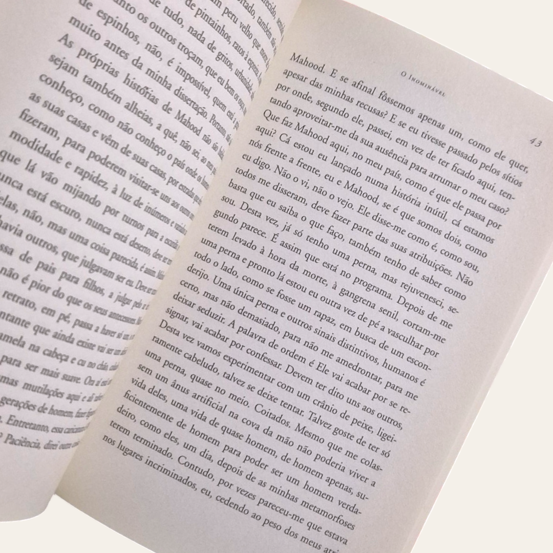 Neste livro, Samuel Beckett coloca a si próprio questões inomináveis, sobre a existência ou a sua impossibilidade, sobre os lugares ou a sua ausência, sobre o carácter dos objectos, sobre o homem.