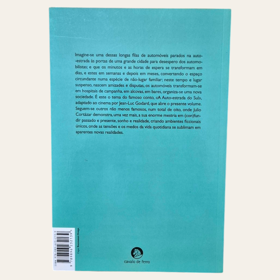Imagine-se uma dessas longas filas de automóveis parados na auto-estrada às portas de uma grande cidade para desespero dos automobilistas; e que os minutos e as horas de espera se transformam em dias, e estes em semanas e depois em meses, convertendo o espaço circundante numa espécie de não-lugar familiar; neste tempo e lugar suspenso, nascem amizades e disputas, os automóveis transformam-se em hospitais de campanha, em alcovas, em bares, organiza-se uma nova sociedade. É este o tema do famoso conto, «A Auto-estrada do Sul», adaptado ao cinema por Jean-Luc Godard, que abre o presente volume. Seguem-se outros não menos famosos, num total de oito, onde Julio Cortázar demonstra, uma vez mais, a sua enorme mestria em (con)fundir passado e presente, sonho e realidade, criando ambientes ficcionais únicos, onde as tensões e os medos da vida quotidiana se sublimam em aparentes novas realidades.