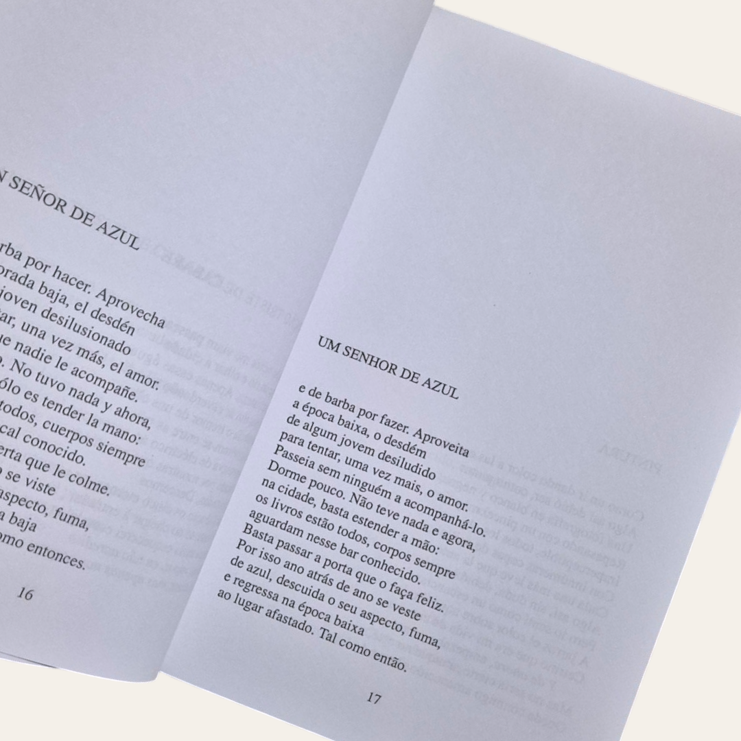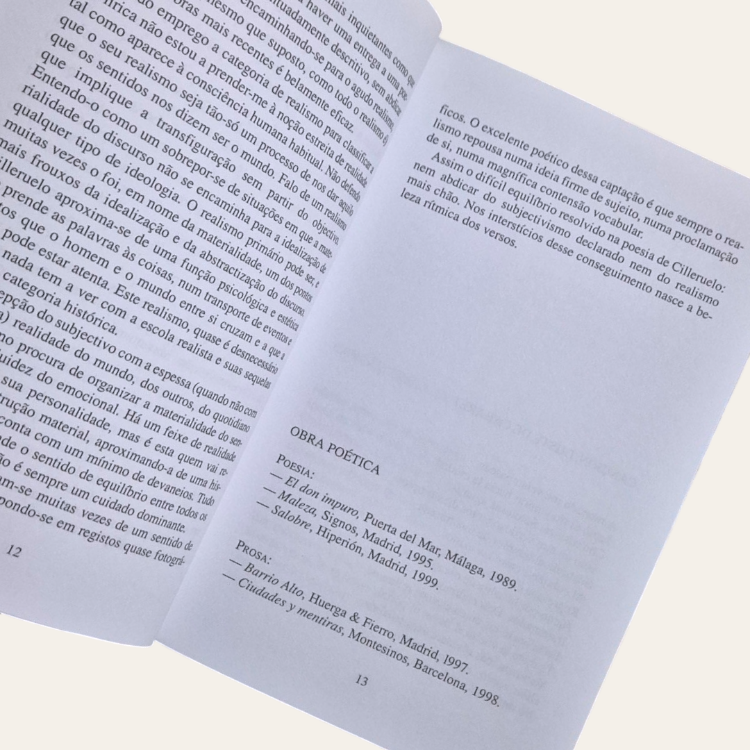 «José Luis García Martín (Aldeanueva del Camino, Cáceres, 1950, há longos anos residente em Oviedo) é autor de uma obra distribuída por vários géneros e subgéneros literários: diários, relatos, traduções, organização de antologias, ensaios, obras teatrais. É ainda director de revistas literárias. O que desenha uma figura de intelectual de significativa dimensão no âmbito da cultura literária de hoje. Contudo, é sobremaneira enquanto poeta que se procura aqui compreender a sua presença no âmbito dessa cultura.» «Abelardo Linares (Sevilha, 1952), uma vez que é o director de uma casa estreitamente ligada à publicação de poesia, tem-se obrigado a permanecer afastado de possíveis inclusões nas mais marcantes antologias de poesia do seu país. Esse facto é tanto mais significativo quanto o aparecimento nessas publicações parece adquirir aí uma relevância que entre nós não possui. Contudo, apesar desses silêncios auto-impostos, a sua não muito vasta obra poética mostra-o como uma das vozes mais significativas da evolucão da poesia espanhola desde finais dos anos 70.» «Julio Martínez Mesanza (Madrid, 1955) é um dos criadores mais singularmente autónomos da actual poesia espanhola. De si próprio afirma: "Si alguien dijera que mi poesía es una poesía moral, yo estaría de acuerdo; si dijera que mi poesía es más épica que lírica, también […] se sirve de símbolos morales y aspira a expresar valores […] con todos los que no se pierden en silencios y ambigüedades."»