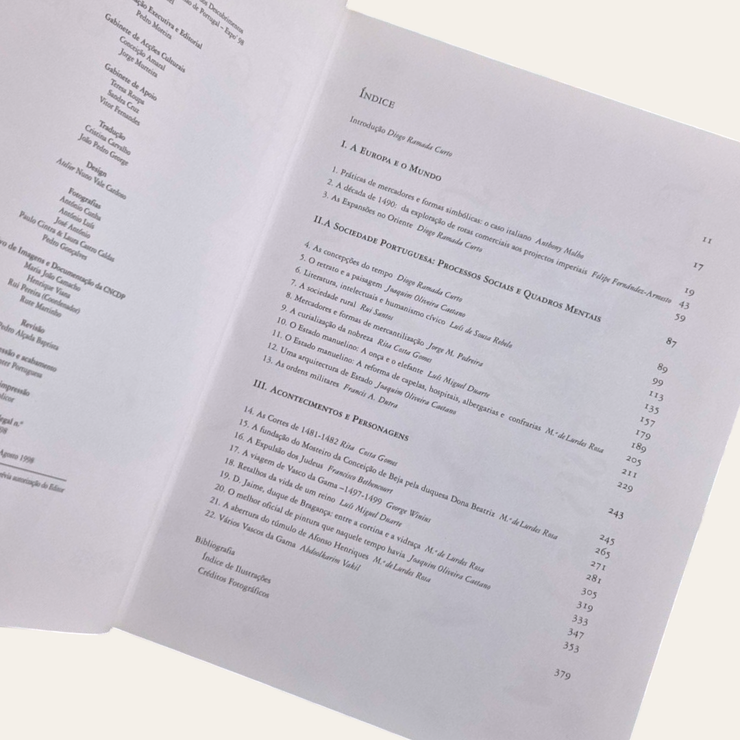 Situar o feito de Vasco da Gama num quadro europeu e mundial, repensara sociedade portuguesa na altura da primeira viagem marítima à Índia, analisar os acontecimentos desse tempo – eis alguns dos tópicos que atravessam este álbum de grande valor artístico e histórico.