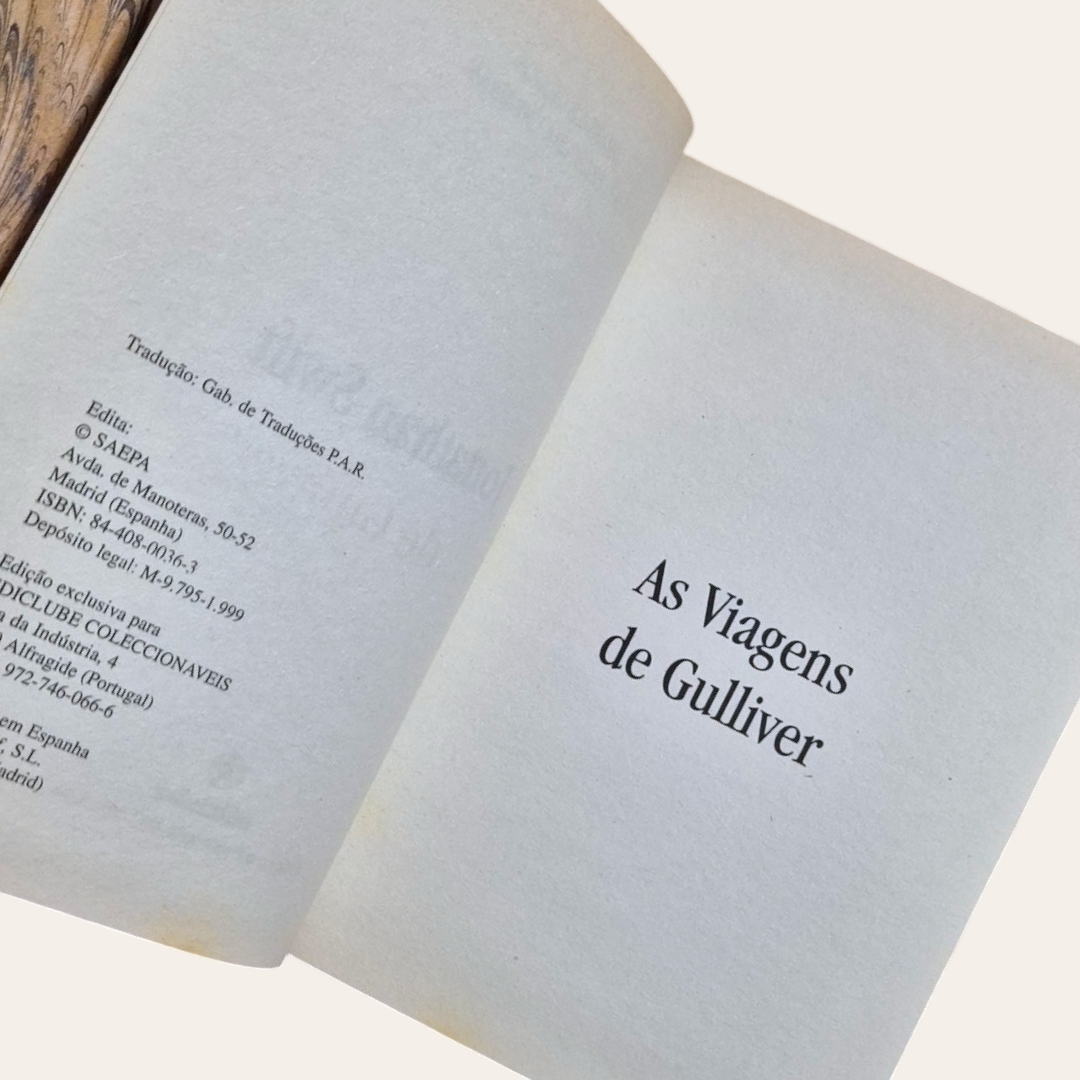 O protagonista desta história é Lemuel Gulliver, que aqui relata as famosas peripécias das quatro viagens que o levaram a conhecer lugares e seres improváveis. Desde os pequenos liliputianos, que passam a vida em disputas fúteis, até aos gigantes altivos e gananciosos de Brobdingnag, todos os cenários se revelam surpreendentes.