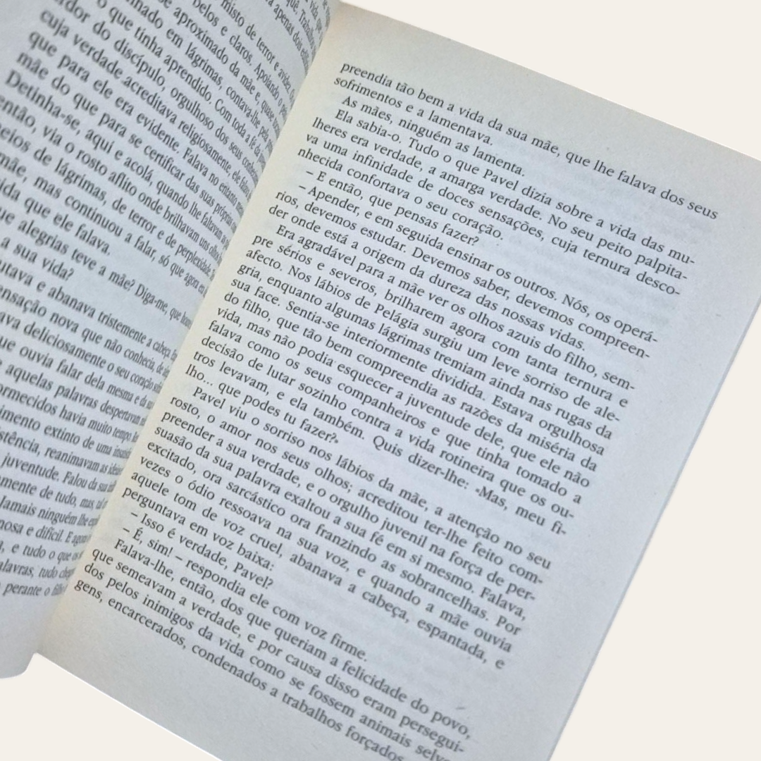 À medida que os dois se aproximam, ele deixa a mãe entrar no seu mundo secreto, no qual os textos, aparentemente inofensivos, representam novas ideias radicais, cuja difusão faz com que Pável esteja em perigo constante. A mãe adere a um grupo socialista revolucionário e, embora fosse radicalizada pelas conversas de Pável e dos seus amigos, dá-lhes, ao mesmo tempo, uma perspetiva humana que valoriza a bondade, a piedade e o amor.