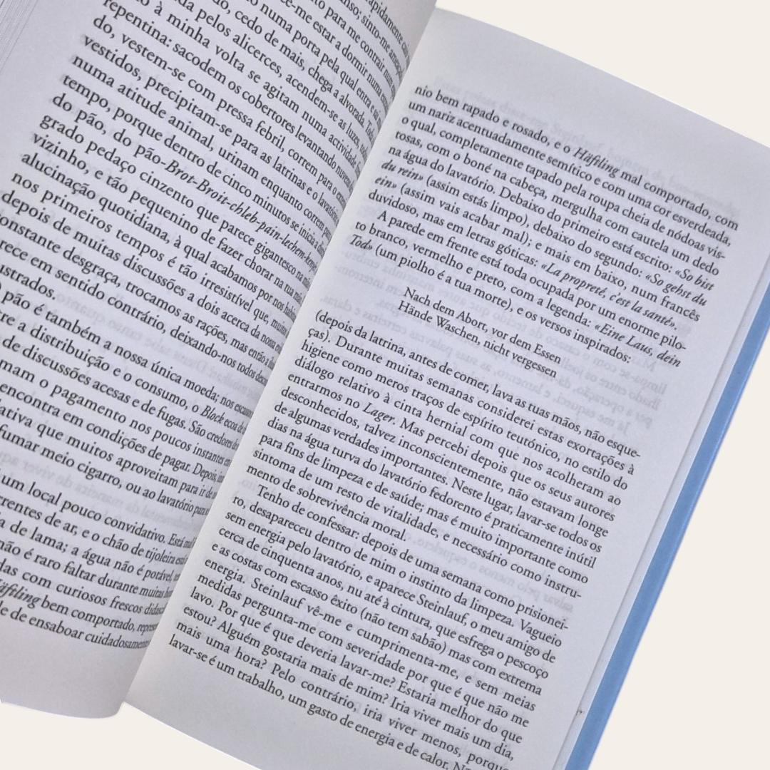 Da experiência no campo nasce o escritor que neste livro relata, sem nunca ceder à tentação do melodrama e mantendo-se sempre dentro dos limites da mais rigorosa objectividade, a vida no Lager e a luta pela sobrevivência num meio em que o homem já nada conta.