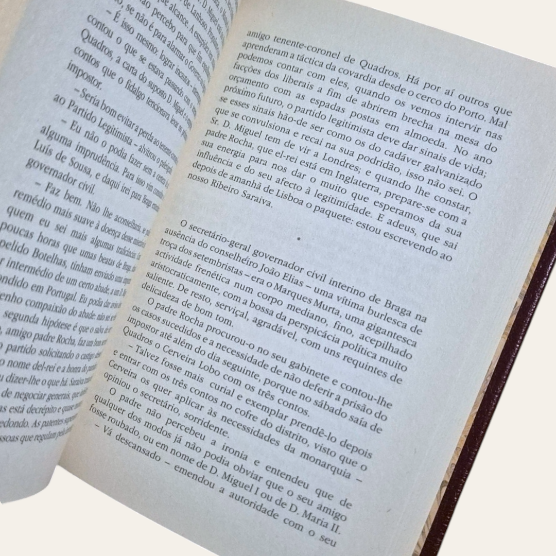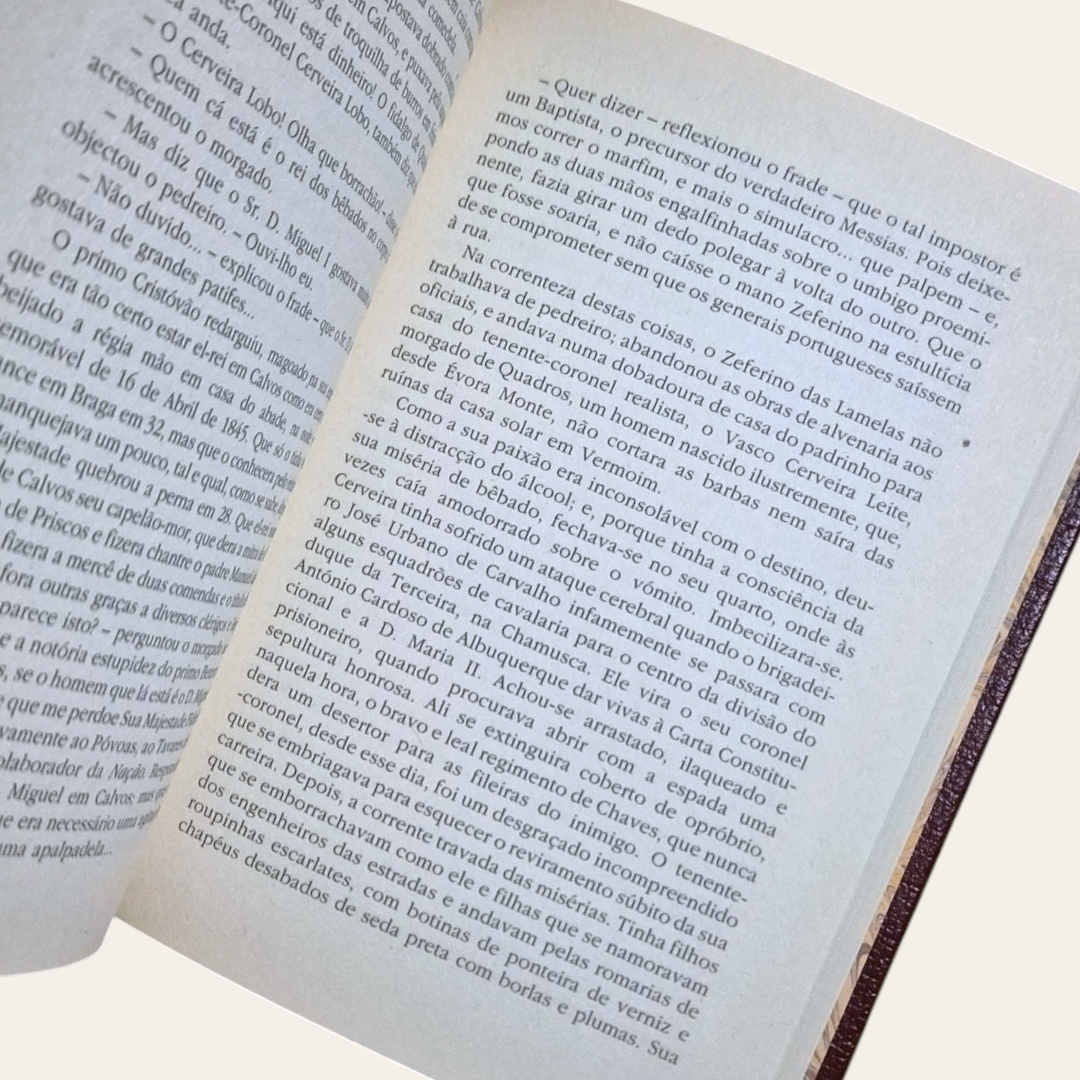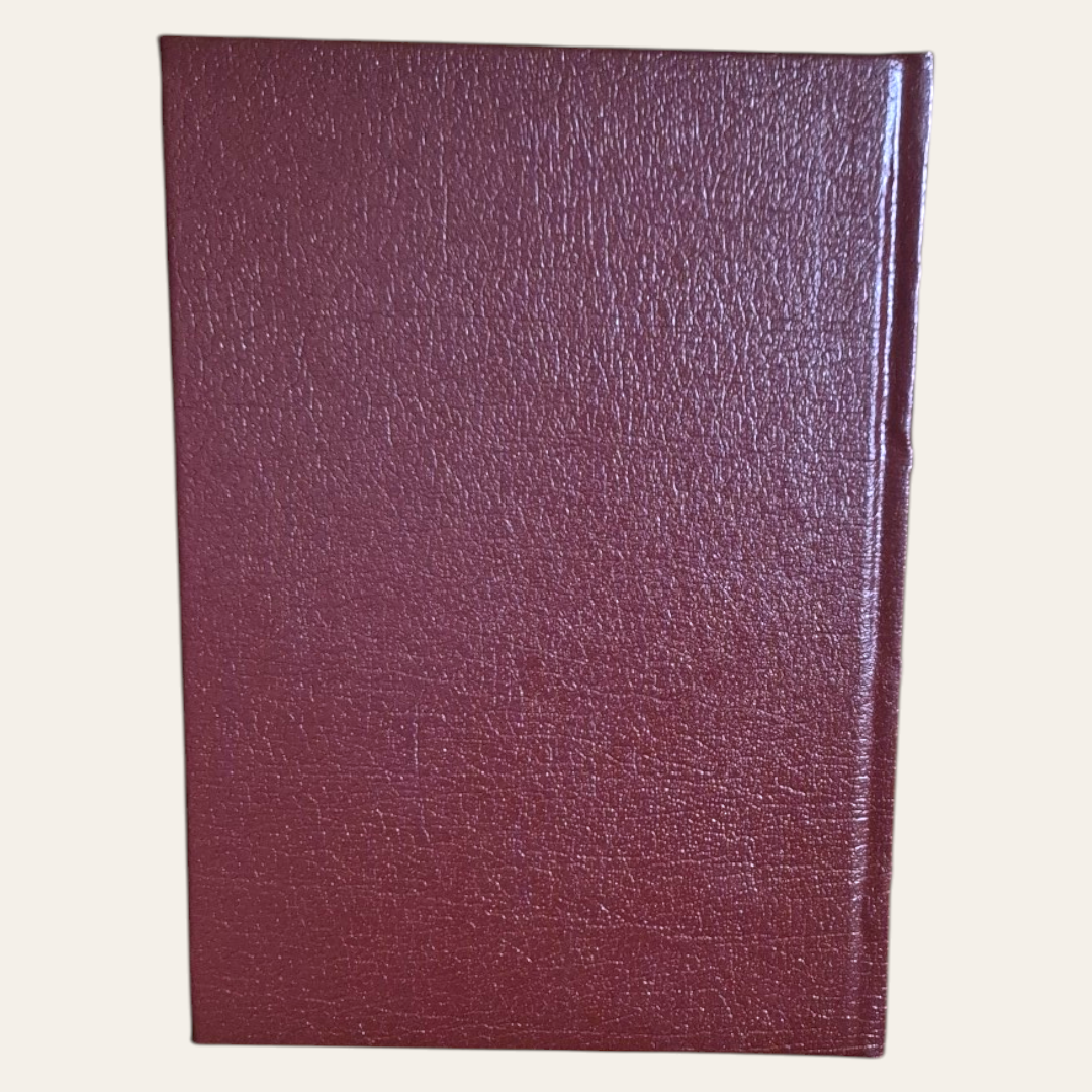Exemplar de capa dura, ricamente trabalhada cheia de pormenores a dourado e encarnado.