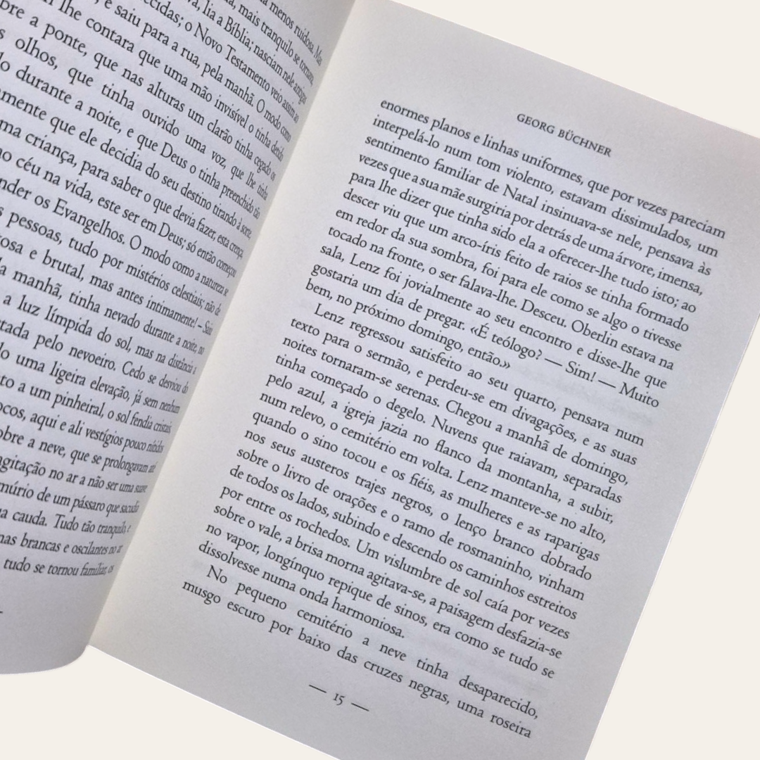 Buchner redigiou Lenz provavelmente entre a Primavera e o Inverno de 1835, com vista a uma publicação na Deutche Revue, impedida contudo pela proibição desta revista no final do mesmo ano. O texto refere-se à passagem de Lenz pelos Vosgues, e à sua estadia com o pastor Johann Friedrich Oberlin, de 20 de Janeiro até 8 de Fevereiro de 1778, em Waldbach, uma pequena aldeia perto de Estrasburgo.
