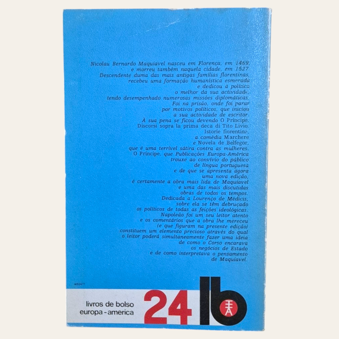 Um tratado clássico sobre a política ou a arte de bem governar que, embora tenha sido escrito no século XVI, mantém toda a sua atualidade, podendo facilmente transpor-se para os dias de hoje. Inspirado na figura de César Bórgia e na admiração desmedida que manifestava por ele, Maquiavel faz uma abordagem racional para aconselhar os aspirantes a líderes, desenvolvendo argumentos lógicos e alternativas para uma série de potenciais problemas, a forma de lidar com os domínios adquiridos e o tratamento a dar aos povos conquistados, de modo consolidar o poder. Obra de referência e de um pragmatismo radical e implacável.