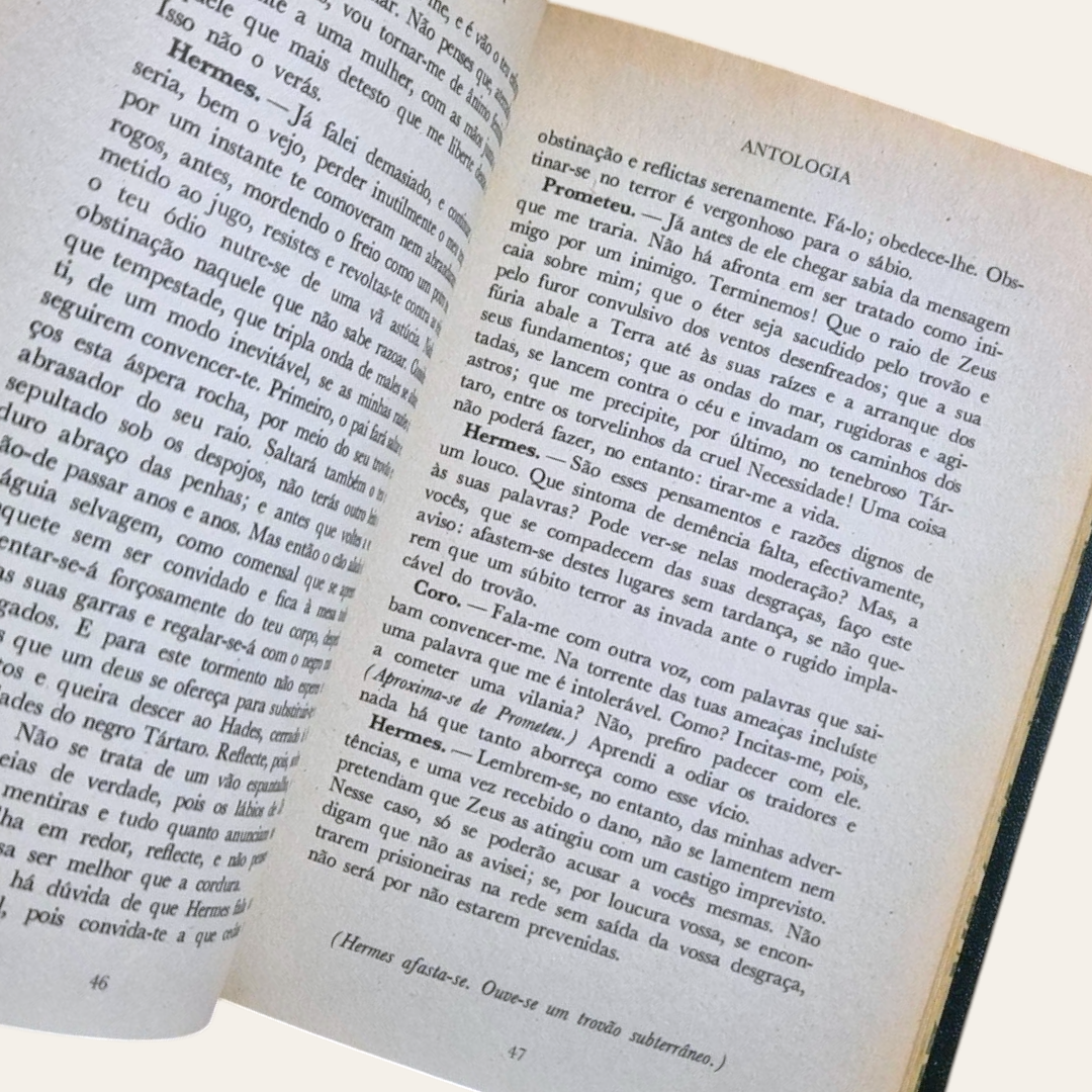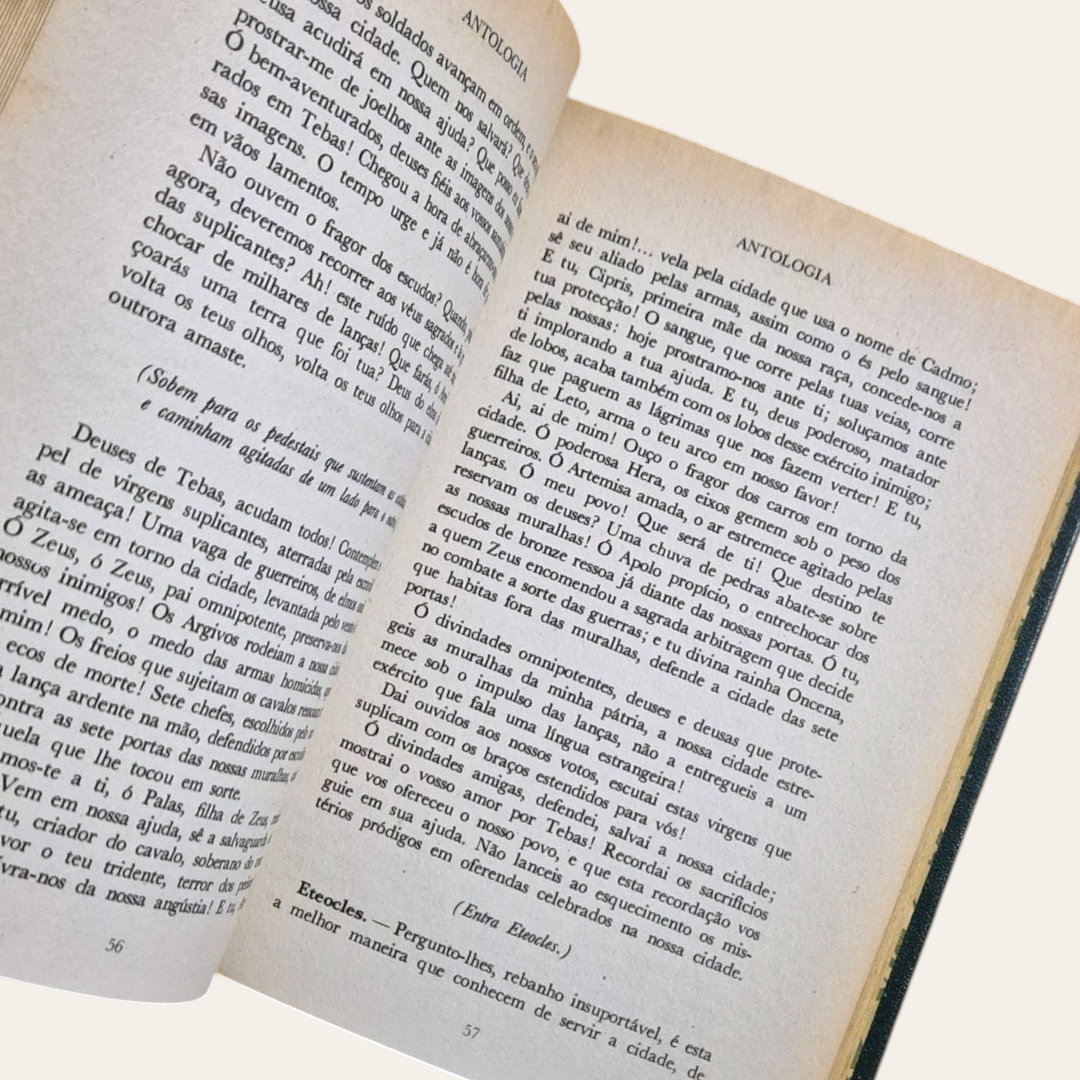 Exemplar de capa dura verde com detalhes a dourado e vermelho.