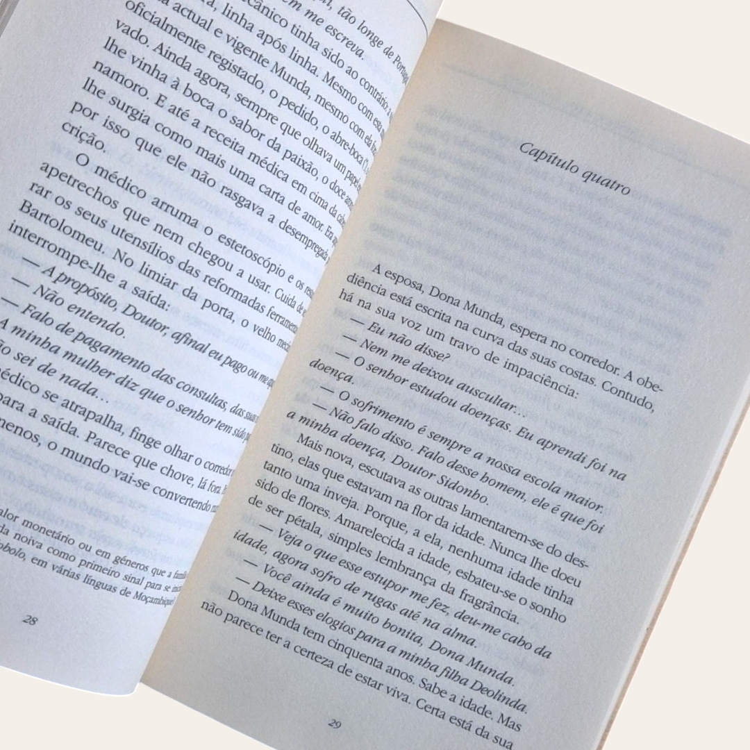 O jovem médico português Sidónio Rosa, perdido de amores pela mulata moçambicana Deolinda, que conheceu em Lisboa num congresso médico, deslocou-se como cooperante para Moçambique em busca da sua amada. Em Vila Cacimba, onde encontra os pais dela, espera pacientemente que ela regresse do estágio que está a frequentar algures. Mas regressará ela algum dia? Entretanto vão-selhe revelando, por entre a névoa que a cobre, os segredos e mistérios, as histórias não contadas de Vila Cacimba — a família dos Sozinhos, Munda e Bartolomeu, o velho marinheiro, o administrador, Suacelência e sua Esposinha, a misteriosa mensageira do vestido cinzento espalhando as flores do esquecimento