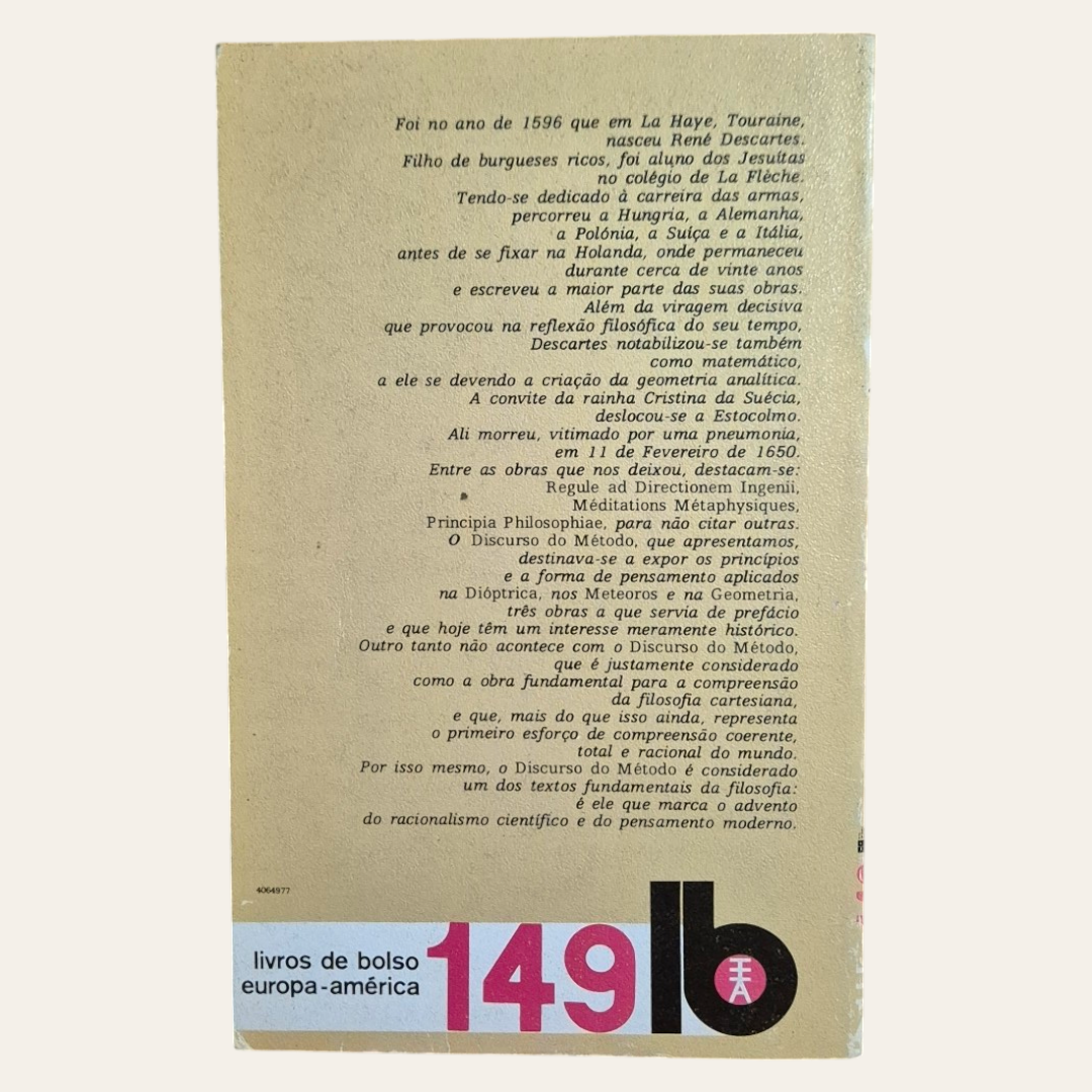 Discurso do Método, obra fundamental de Descartes e da filosofia ocidental, foi escrito em 1633. Escrito sob a forma de autobiografia, tratado científico e filosófico, fundamenta o racionalismo moderno e a filosofia cartesiana na linha de Montaigne e Galileu. Com Discurso do Método Descartes revolucionou o pensamento filosófico, sendo considerado como o primeiro filósofo moderno.