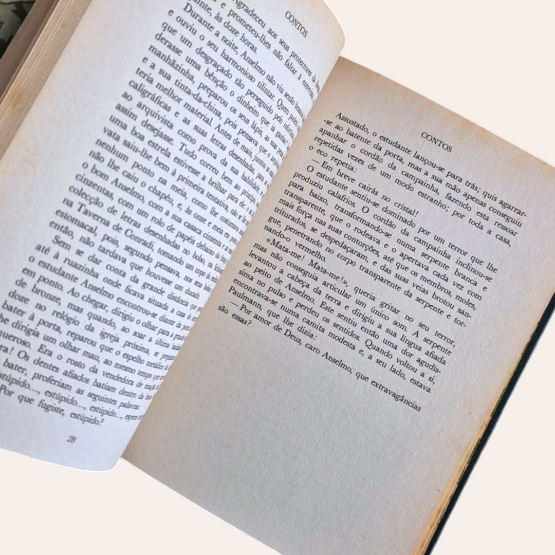 Evidencia ligeiros sinais de manuseamento, bem como páginas amarelecidas pelo tempo e picos de acidez.